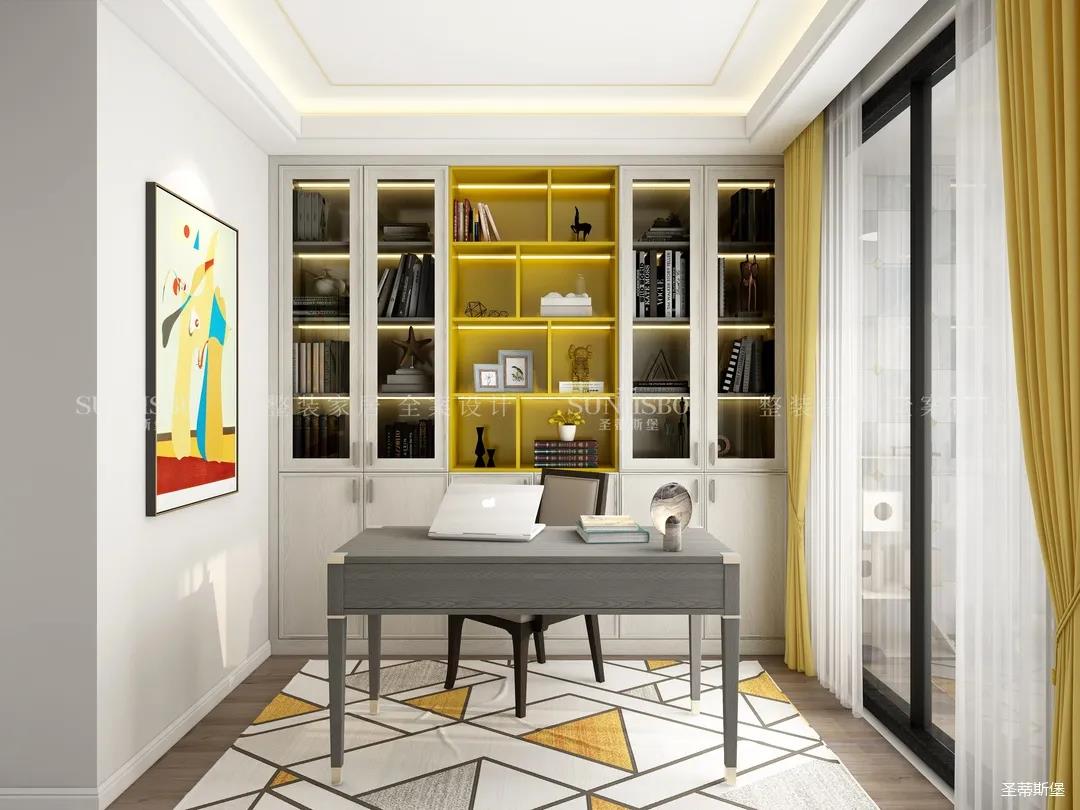 在書(shū)房中,目之所見(jiàn),從空間到陳設(shè),色調(diào)由淺及深,在硬朗與柔軟、明亮與暗啞之間合理切換,精心雕琢出層次感。時(shí)尚高雅的色調(diào)變化和家具的紋理在線(xiàn)條的交錯(cuò)下,相互交匯出美學(xué)與功能的書(shū)房空間,簡(jiǎn)單的臨窗觀景,讓身心即刻得到放松。